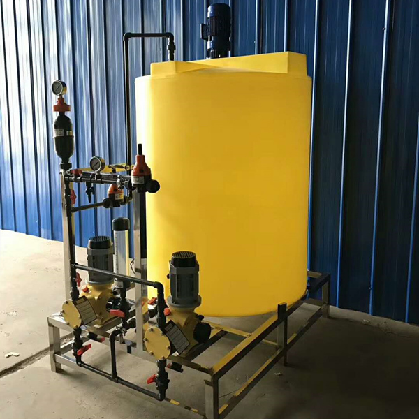 3、溶液箱:1立方米不銹鋼藥箱。加藥裝置為二箱三泵方式。計(jì)量泵:采用大潮泵業(yè)生產(chǎn)的液壓隔膜計(jì)量泵。