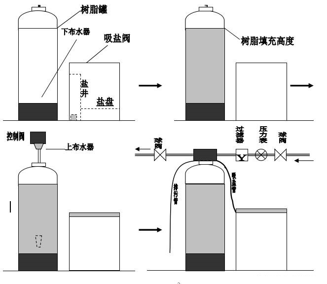 2、鹽罐應(yīng)靠近樹脂罐,并盡量縮短吸鹽管的長度。