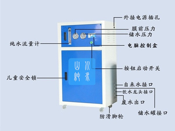 機(jī)器尺寸:高95CM*正面寬55CM*前后寬35CM 額定出水量:100L/H